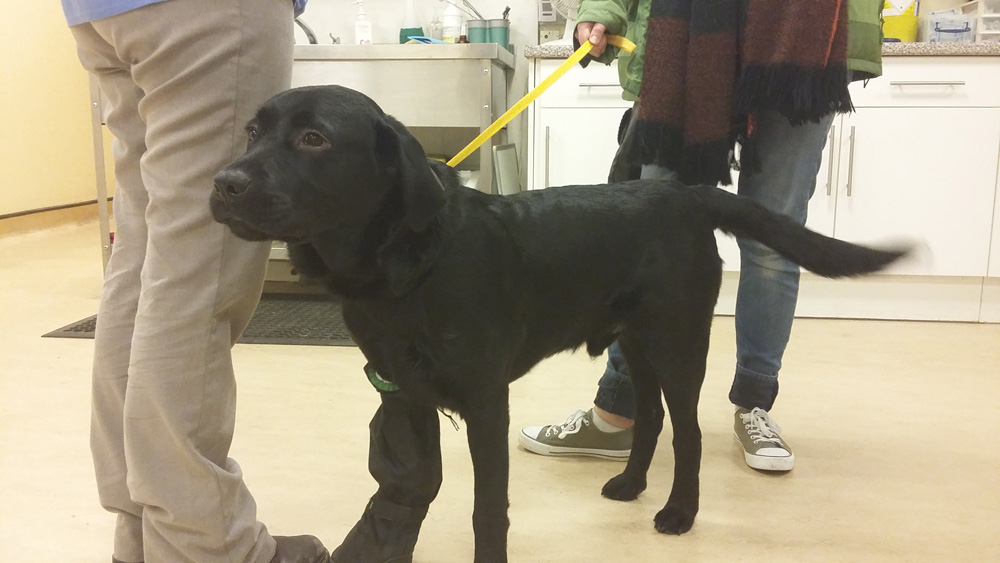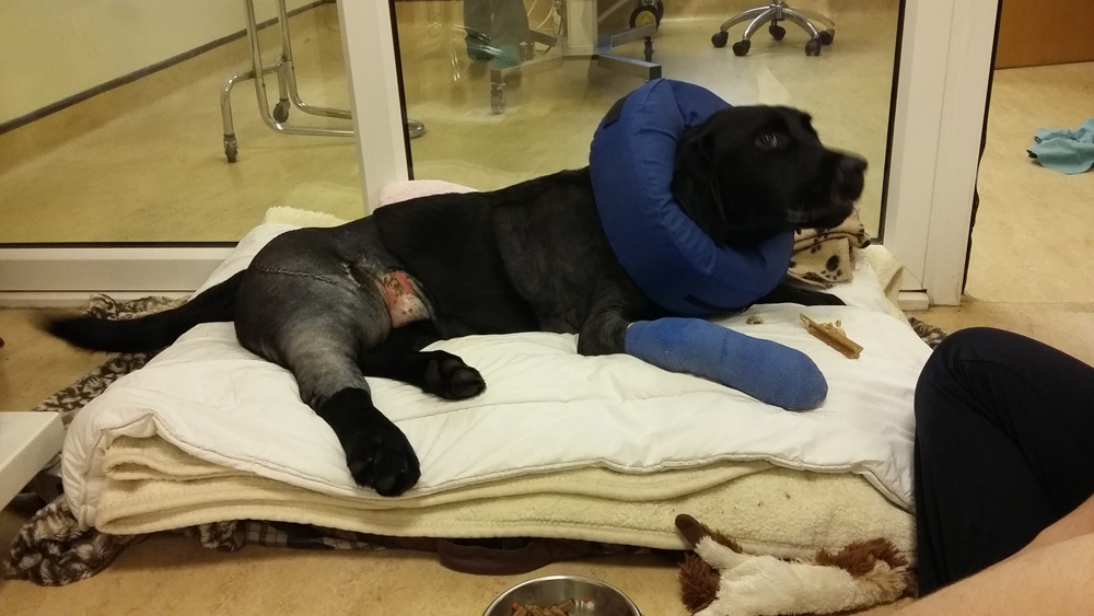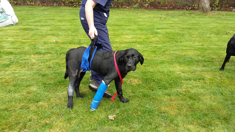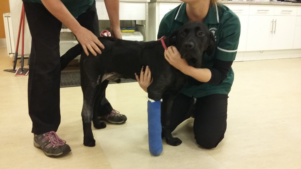 Baxter an 8-month-old black Labrador was referred to our Orthopaedic Surgeon Stuart Ashworth after being involved in a road traffic accident.